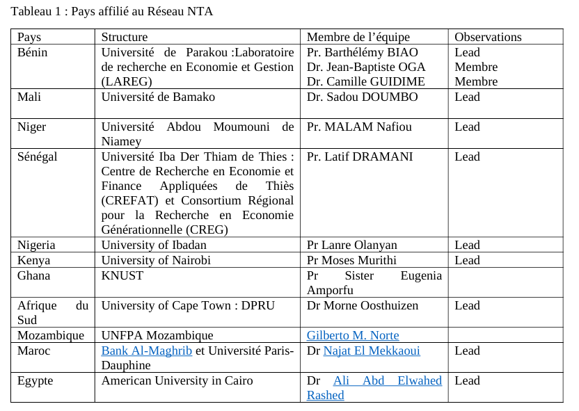 Pour rappel, le projet NTA a été initié en 2004 par les chercheurs du CEDA (Center for the Demography of Ageing), basé à l’Université de Berkeley et ceux de East West Center, basé à l’Université de Hawaï. Par la suite, ces recherches ont été étendues aux chercheurs africains et des autres pays du monde pour aboutir au Réseau international des chercheurs intervenant sur les comptes nationaux de transfert et ses extensions. Le CREG est actuellement un Centre d’excellence dans ce domaine.